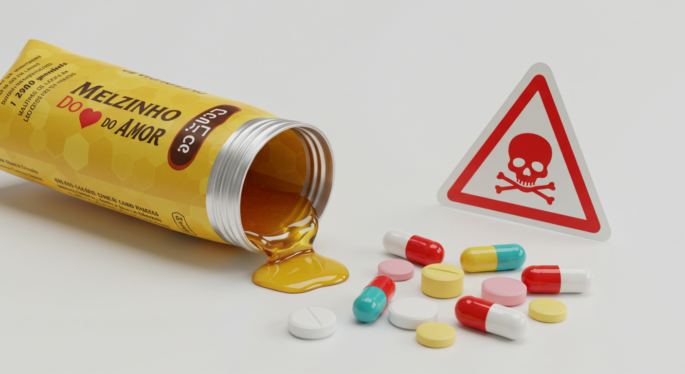 No entanto, por trás da propaganda sedutora, existe uma realidade preocupante: o Melzinho do Amor não é apenas mel com ervas. Em muitos casos, trata-se de uma droga disfarçada de suplemento, sem controle de qualidade, sem registro da Anvisa e com ingredientes que podem causar sérios riscos à saúde.
